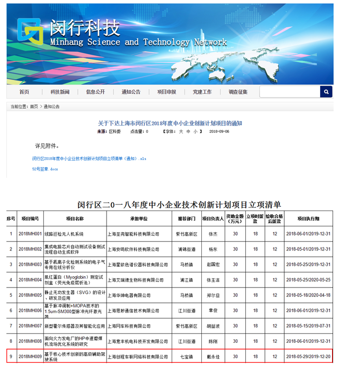 2018年9月6日,我司“基于核心技术创新的高级辅助驾驶系统”经过上海市闵行区科委专家评审,获得专家的一致好评,已于9月6日通过项目立项,项目立项后将获得闵行科...