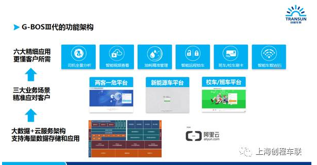 G-BOSⅢ代智慧运营系统在精细化方面堪称惊艳,根据客户对客车使用的三大主要场景,分别开发底层架构相通但表层应用各异的三大主流平台,满足各细分用户业务管控的需求,实现精准对接,保证服务的快捷高效。新能源、两客一危、校车及班车三类细分市场上的用户都可选择自己的专属平台,这样做的好处是不仅满足了不同用户业务管控的需求,还实现精准对接,以此保证服务的快捷高效。