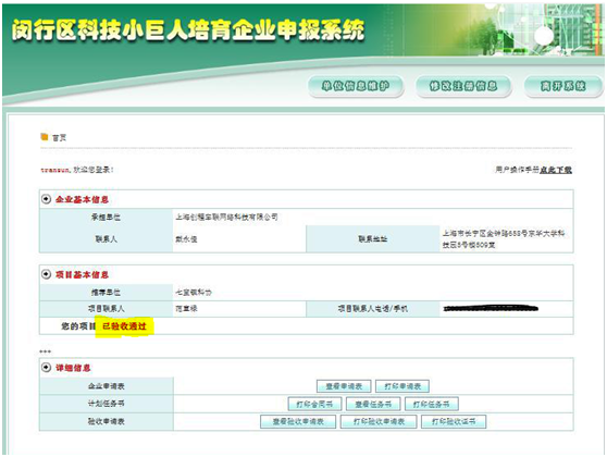 2018年4月3日,我司喜获上海市闵行区科学技术委员会、财政局制的验收证书,闵行小巨人科技项目验收成功,并获得“闵行小巨人”项目资金支持。