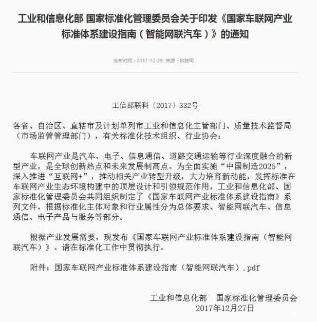 12月29日,国家质量监督检验检疫总局、国家标准化管理委员会批准发布了机动车电子标识六项国家推荐性标准,标准将于2018年7月1日起正式实施。此次发布的六项标准包括《机动车电子标识安全技术要求》、《机动车电子标识读写设备安全技术要求》、《机动车电子标识读写设备安装规范》等,其中《机动车运行安全技术条件》GB7258-2